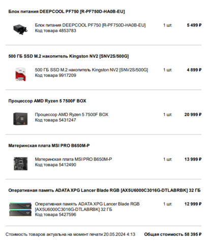 А так в целом   смыла  нет  увы   R5 7500f + b650 +DDR-5 6000  +  колоссальный потенциал на апгрейд  будет  где  то в 40-45   что то в DNS , али  , озон ...