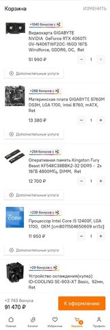 i5 12400f( 6 ядер 12 потоков) + b760m ddr5+ память 2x16 4800мгц Kingston fury Beast+ 4060ti 16 GB +кулер